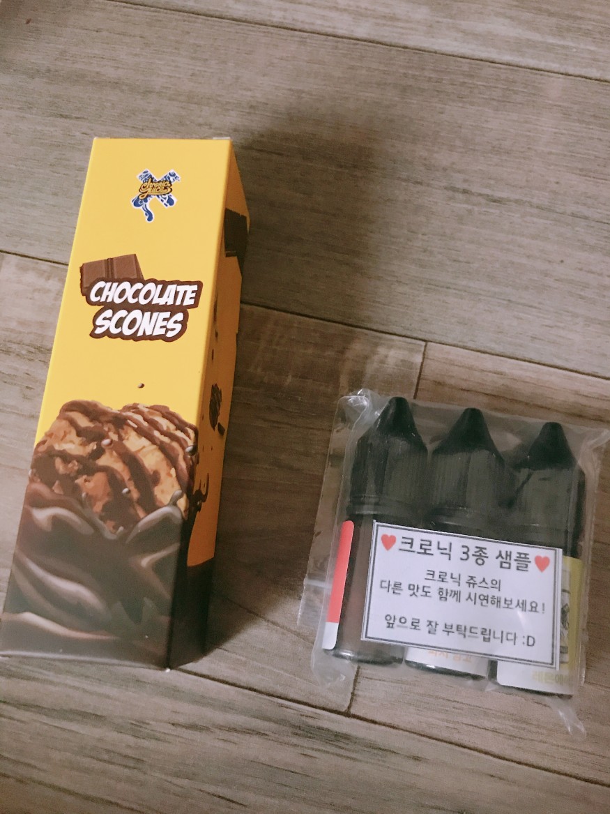 (아주아주 주관적인 리뷰임을 미리 말씀드립니다) 생각보다는 마구 진한 단맛이 아닌, 달달구리한 향이었으며 화장품 느낌이 아닌, 아주 잘 섞인 느낌의 초콜릿 디져트 향이어서 데일리하게 즐길 수 있을 것 같은 액상이 아닌가 싶습니다. 정말 디져트 가게에서 먹는 초콜릿스콘의 느낌도 나는듯도 했습니다 ㅎㅎㅎ