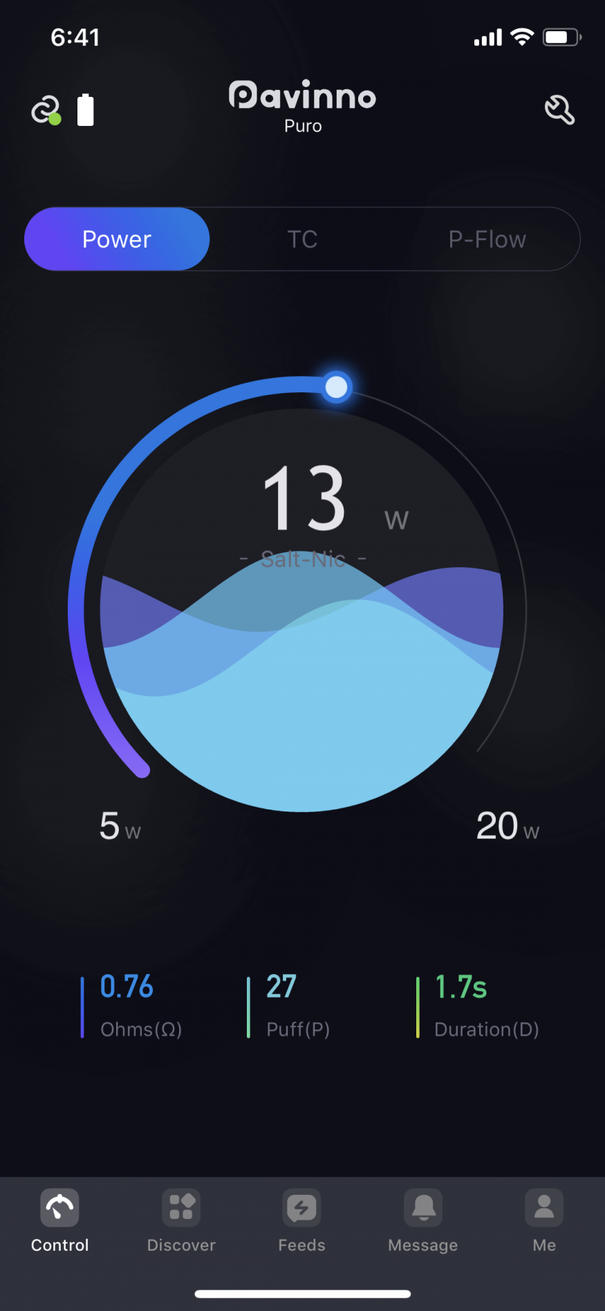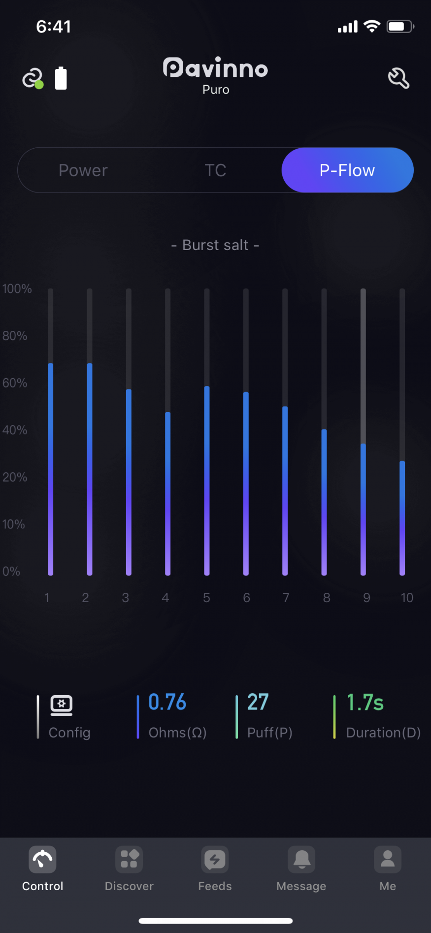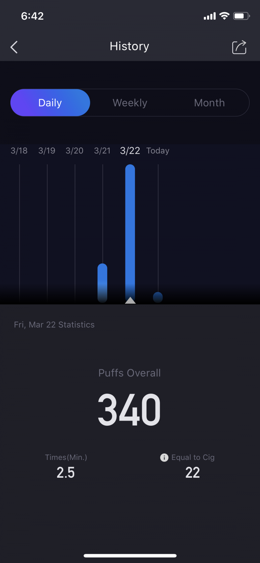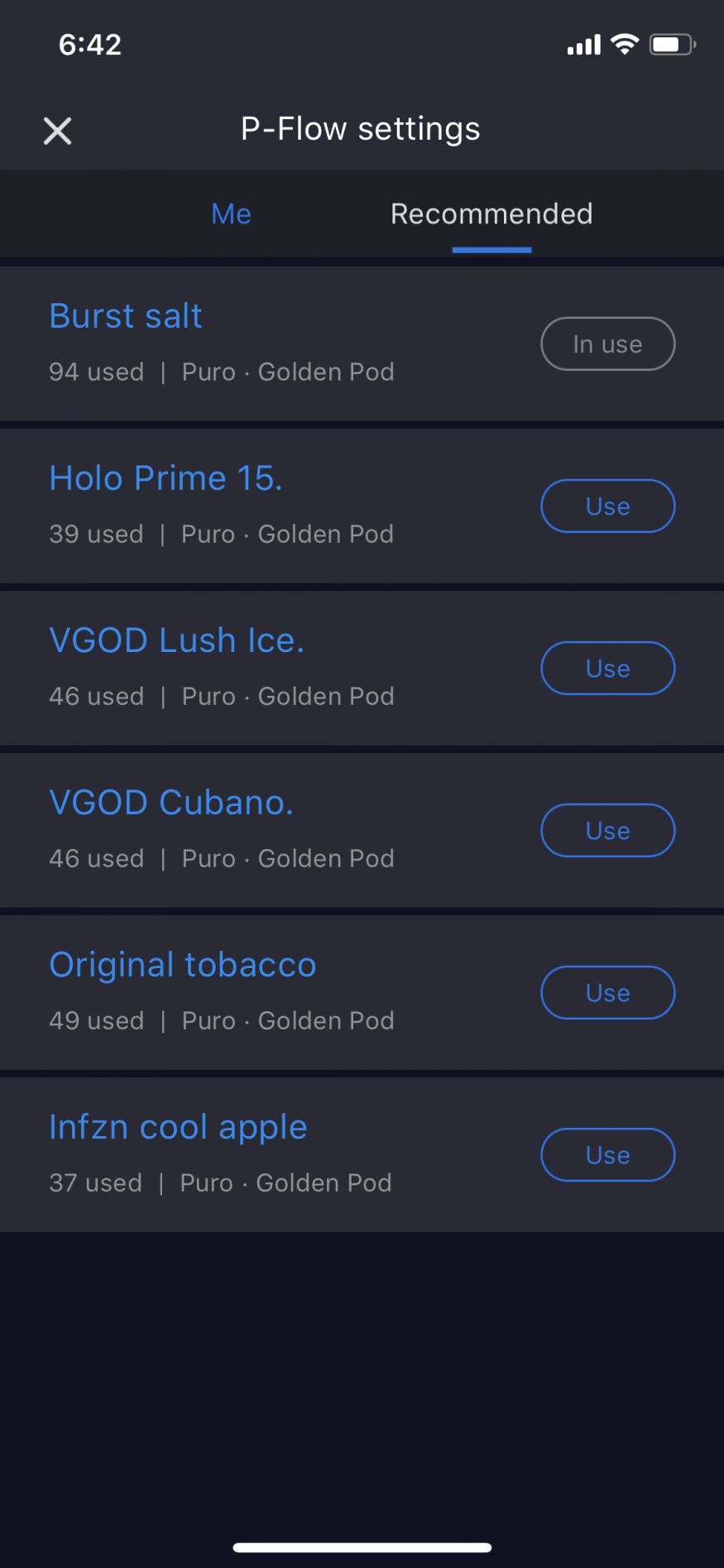 블투로 사용하는 어플이 직관적이고 기능도 좋다. (puff횟수를 일간 주간 월간 표시. 전날 전주 전월과 비교 가능. 온도와 와트, puff flow 조절 및 타인이 올려놓은 셋팅을 불러와서 내 기기에 적용 가능)