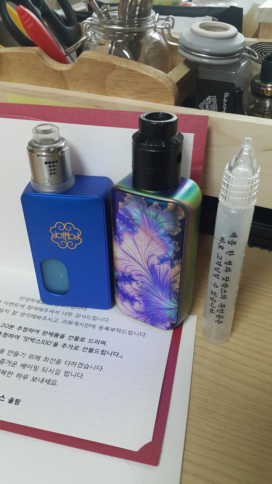 맛을 맞춘다는 게 어렵네요 ㅋㅋ 크게 느꼈습니다. 액상을 제조하고 이름을 붙이는 건 더 어렵겠네요.. ㄱ이라고 만들어 놓은 액상에서 ㄱㄴㄷㄹ까지 느끼는 소비자도 있을텐데 이런 부분에서 고민이 많으시겠습니다...ㅎㅎ