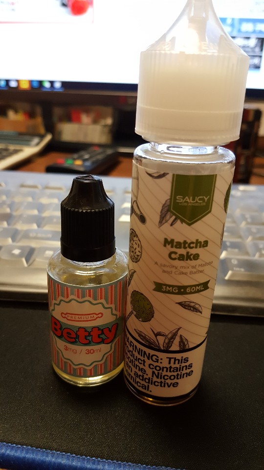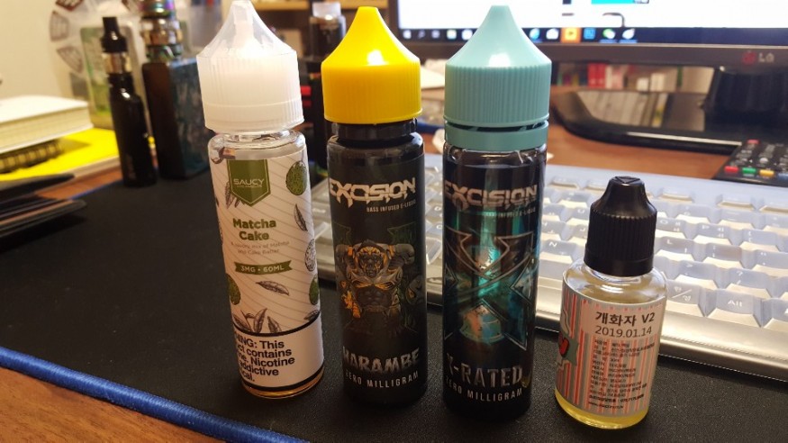 3. 마챠케잌은 최근 정말 핫한 녹차맛 액상 중 베스트로 꼽힌 액상 답게 정말 맛나더라고요. 어떤 리뷰어 말처럼 녹차분말을 입에 털어넣어 먹는 듯한 느낌을 받았습니다. 그렇다고 녹차맛만 있냐? 그건 아니고 달달한 케잌의 크리미함이 같이 오더라고요. 그리고 저만 느끼는 맛일지도 모르는데 약간 쥬시후레쉬 껌맛도 나는거 같고... 암튼 주력은 아니지만 자주 사먹을 수 있는 액상하나 찾은 기분이 들어 좋았습니다.