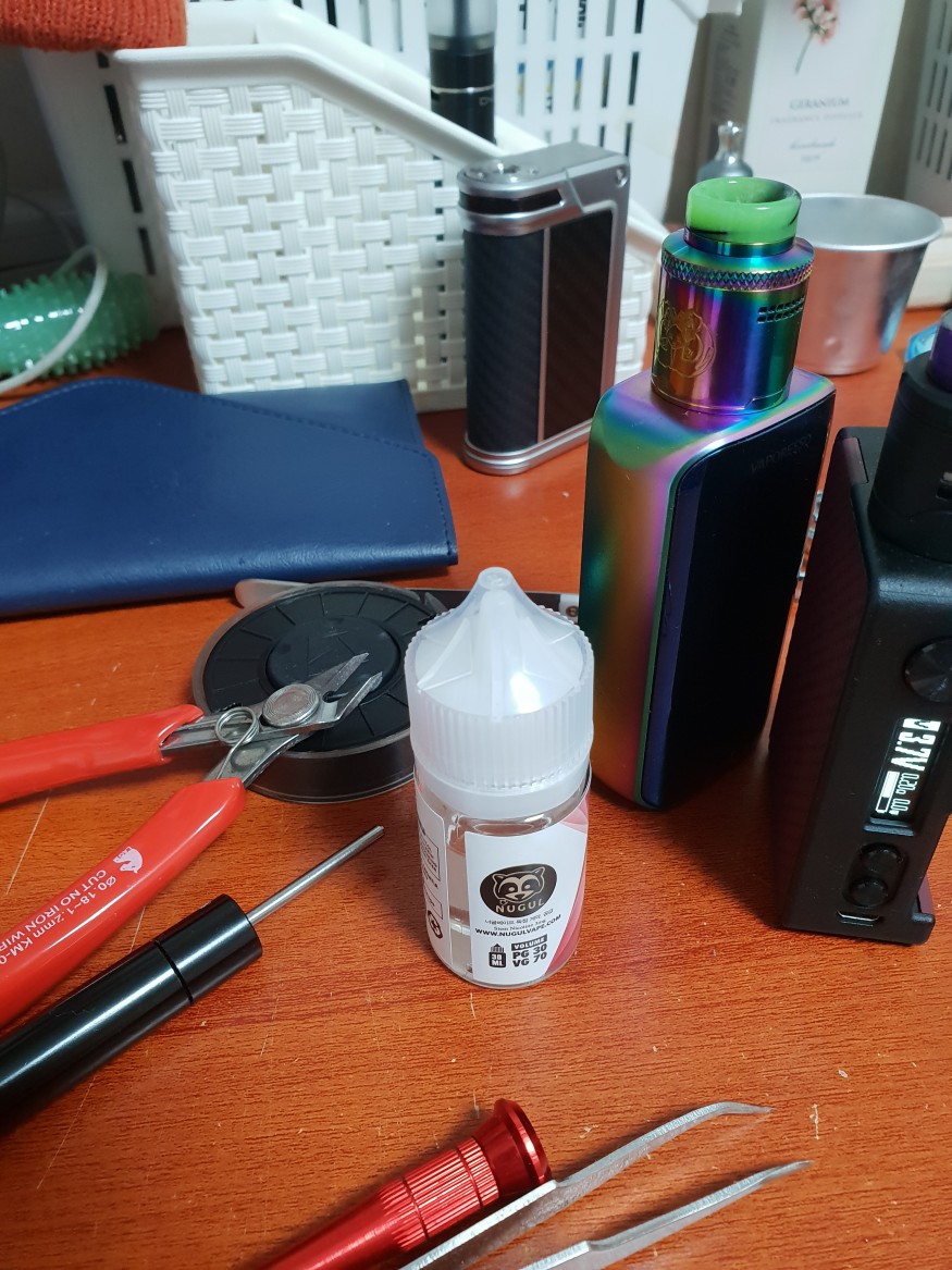 혹시나 리빌드 문제일까 싶어서 한참을 베이핑하다 비비드 초코바나나를 부어봤는데 이건 맛이 제대로 느껴지는걸 보니 리빌드 문제는 아닌것 같습니다.