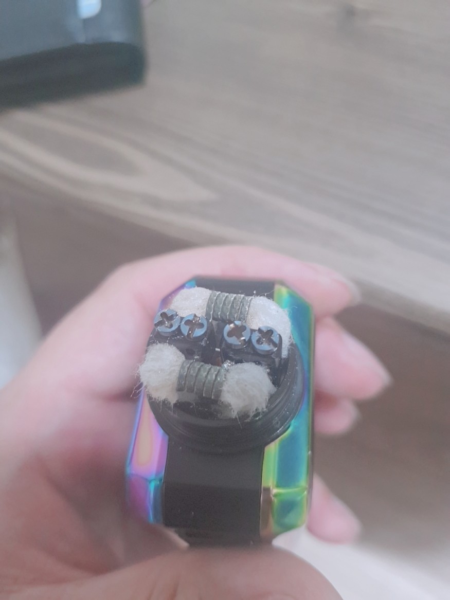 트위스티드메시스24rda에 빌드했을 때 0.23옴 나왔고, 60와트 (3.71볼트)로 딸기&리치 액상 맛 봤습니다.