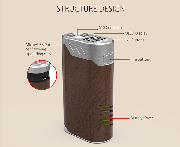 장점 :  26650배터리라 오래쓸수있다!,  파워모드,소프트, 유저모드지원, 30미리까지 커버가능. 구하기힘든 26650배터리를 두알이나 준다!