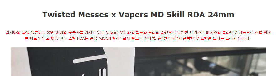 스킬 RDA 트메와 베이퍼스 MD의 콜라보 - Twisted Messes x Vapers MD Ski…