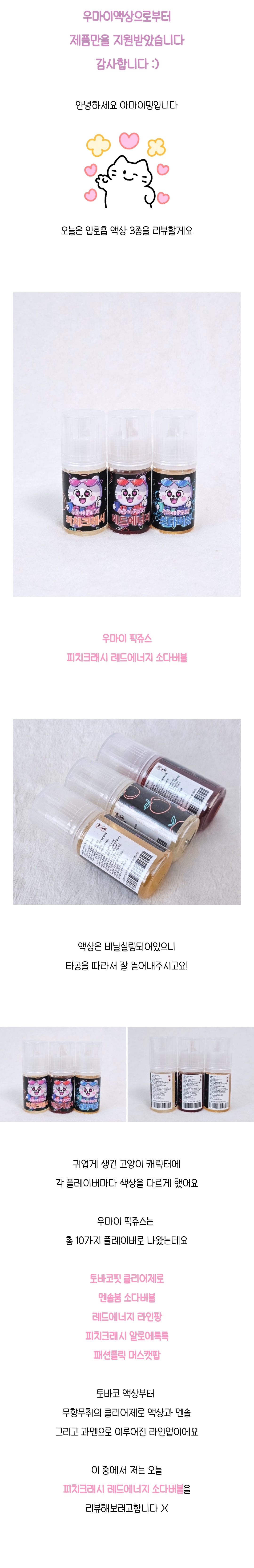 우마이 픽쥬스 액상 피치크래시 레드에너지 소다버블  3종 솔직 후기    | 아마이밍