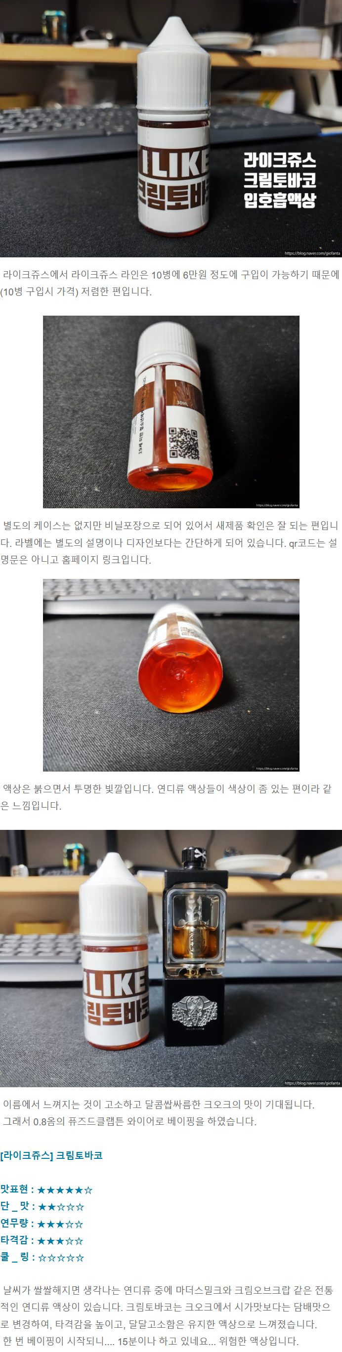 [라이크쥬스] 크림토바코 입호흡 액상