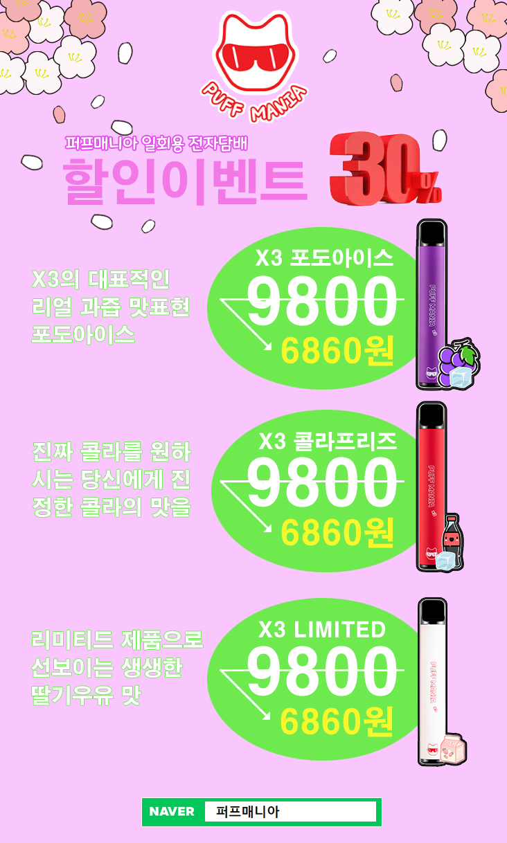 일회용전자 담배 30% 세일 (한정수량, 한정기간)