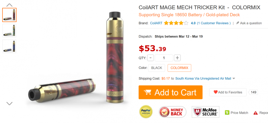 [GB]SBODY C1D2 $73.99, Coilart Mage Mech Kit $44.99 댓글+1개