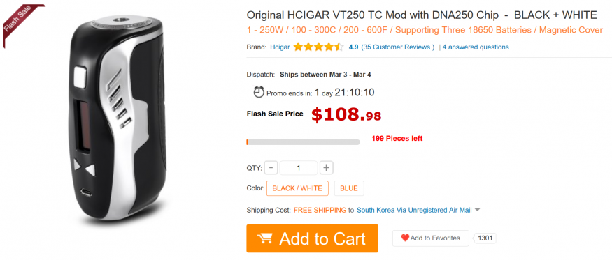 [GB] HCigar VT250 aka 면도기 $108.98, 아로마마이저+ $35.99 댓글+2개